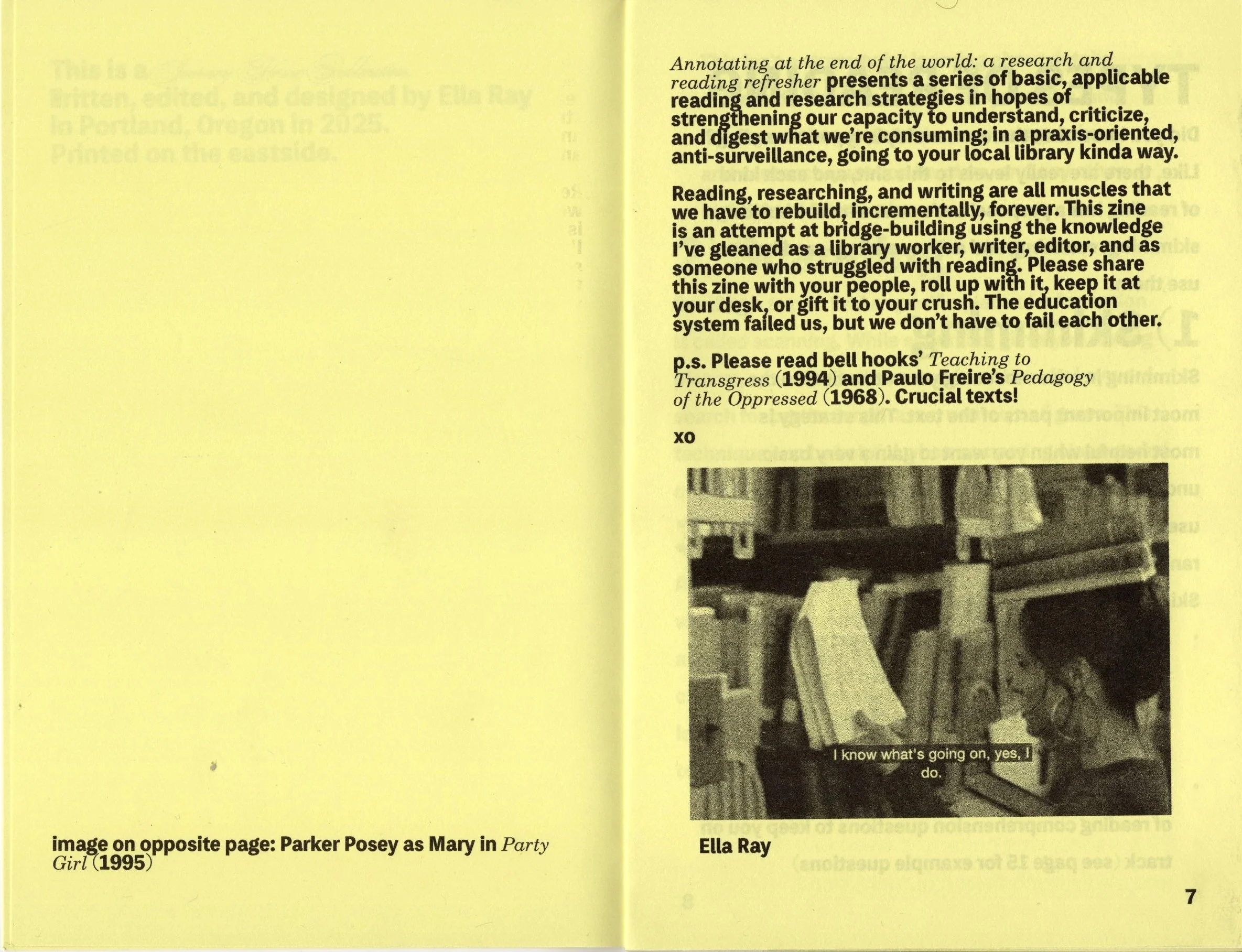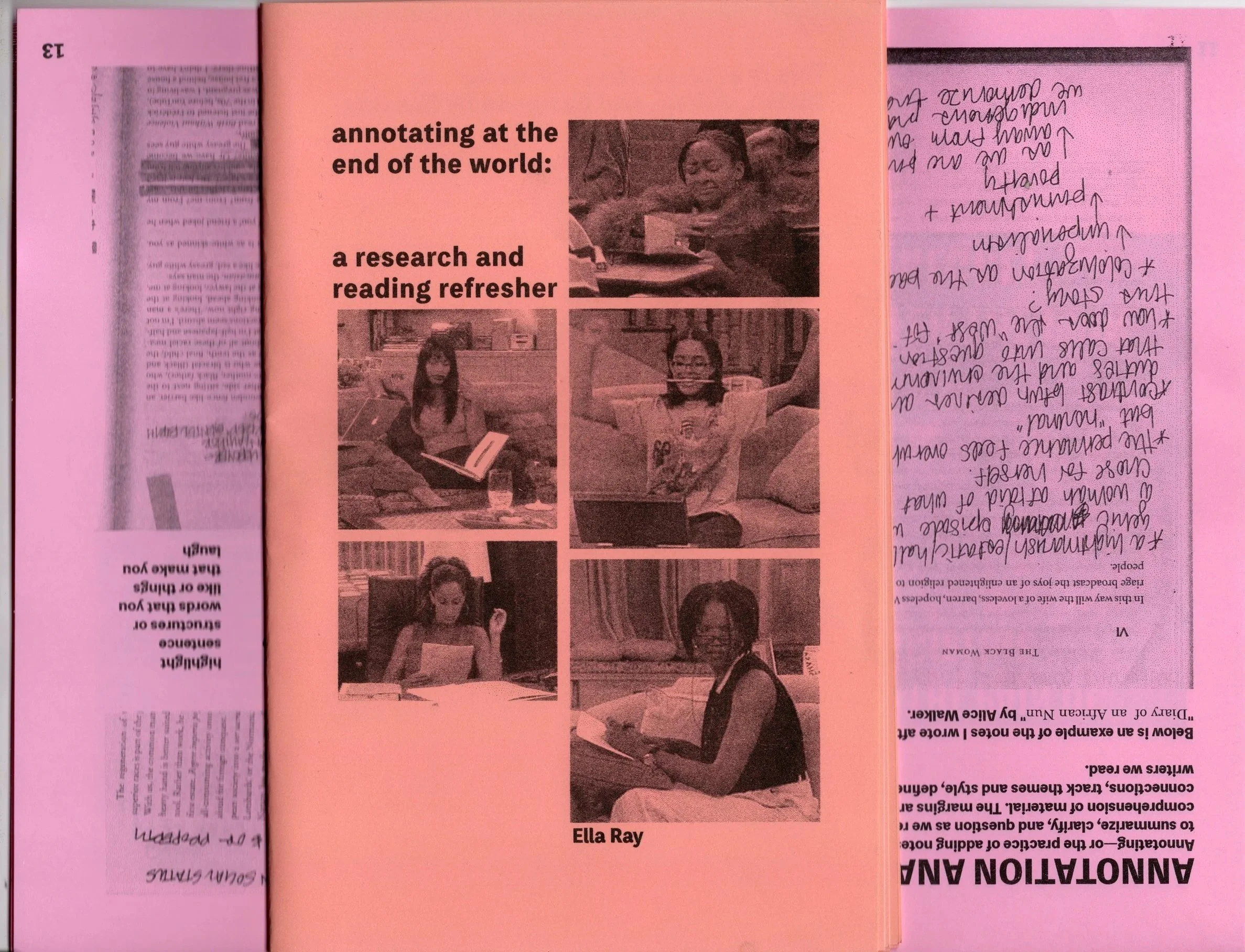 excuse me, do you have a second to talk about abortions?, 2026 (ready to print, double sided pdf) Annotating at the end of the world: a research and reading refresher, 2025a zine of practical and applicable literacy cultivation strategies and research tools to help us better understand and critique our world Sumatriptan, 2025a zine about black disabled refusal
